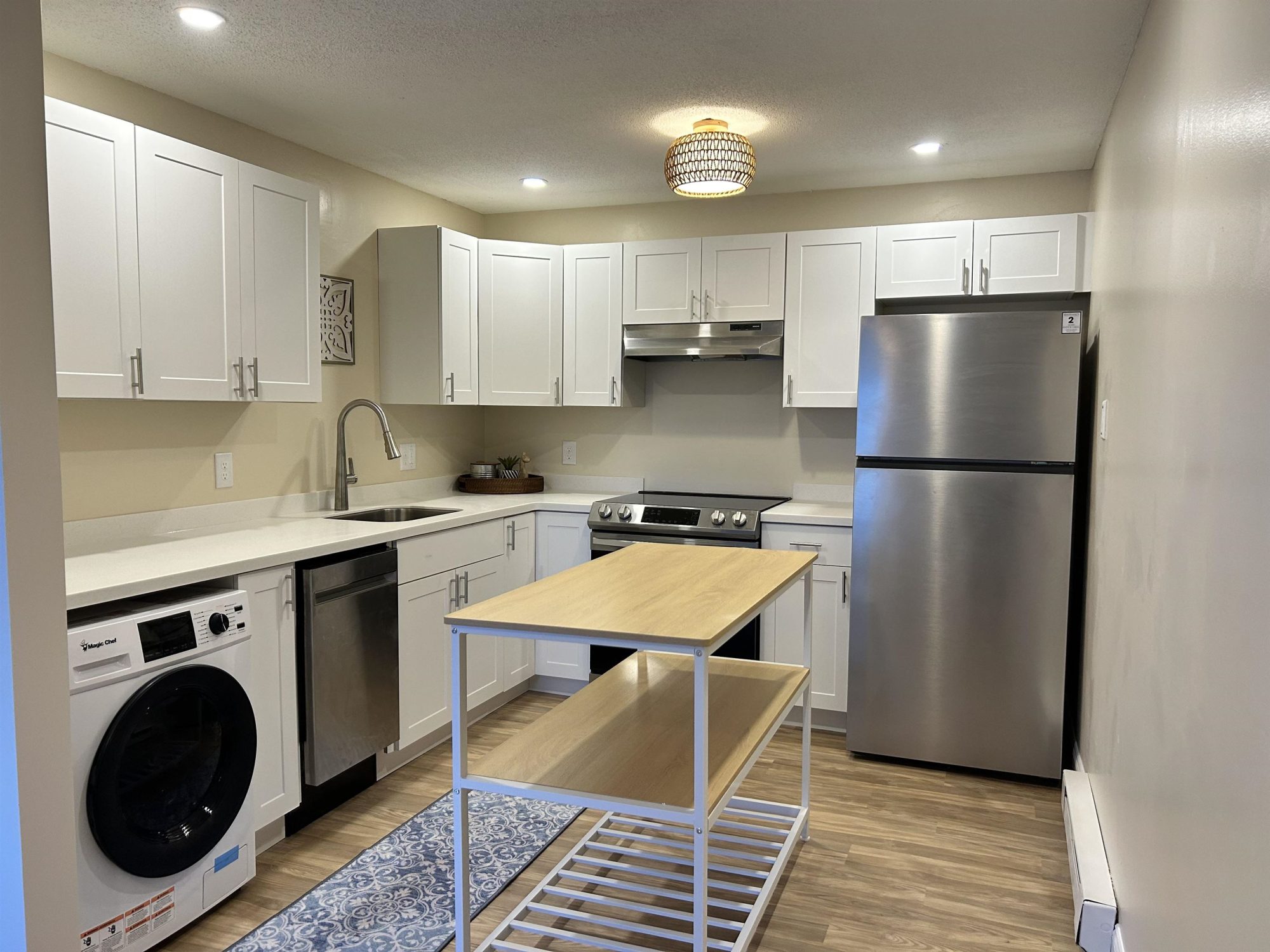 Beautifully updated condo with 2 bedrooms, 1 bathroom and views of Opechee Bay. When you walk in you enter into an open concept living room, dining room and kitchen. The kitchen boasts white shaker cabinets, solid surface countertops and stainless steel appliances with a washer/dryer in unit. Freshly painted. Updated bathroom, flooring and fixtures throughout. Two designated parking spots available with this unit. Pet friendly complex with low HOA fees. Walking distance to downtown Laconia and across the street from Opechee park. All furniture has since been removed and is ready for a new owner. All you have to do is move in and enjoy! Agent has interest in property.