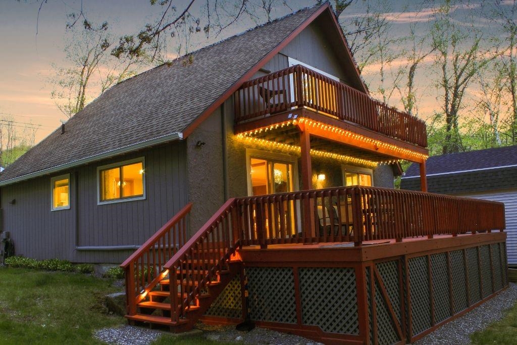 Beautiful Gunstock Acres Chalet in Gilford, NH, is ideally located near Gunstock Mountain, Lake Winnipesaukee & offers seasonal mountain views. During the remodeling in 2022, the interior received updates such as new doors, vanities, & flooring, enhancing both functionality & aesthetics. The exterior was updated with a cozy fire pit for outdoor gatherings, solar lighting, crushed stone walkways, extra deck supports, gate to the lower deck, & new exterior lighting fixtures. The integration of Wi-Fi capabilities of appliances & lighting fixtures brings modern convenience, allowing for remote control & scheduling. Additionally, a Ring security system adds peace of mind with its surveillance features. The home has Anderson Renewal windows, a pellet stove hookup, a Monitor K1 heater & mini-split systems ensuring comfort year-round. Inside, there’s a spacious mudroom and an open layout downstairs, perfect for gatherings. Storage won’t be an issue thanks to the metal garage & shed. As part of Gunstock Acres Association, you have use of the communities’ private amenities on Lake Winnipesaukee including the beach, moorings (waitlist), small boat launch, tennis court, & picnic area. This property was approved by the Town of Gilford as a short-term rental. Furnishings are sold separately & not included in the list price. Security system (audio & video) in use at the property. Please join us at the open house on Sunday, April 7th from 11:00 a.m. – 1:00 p.m.