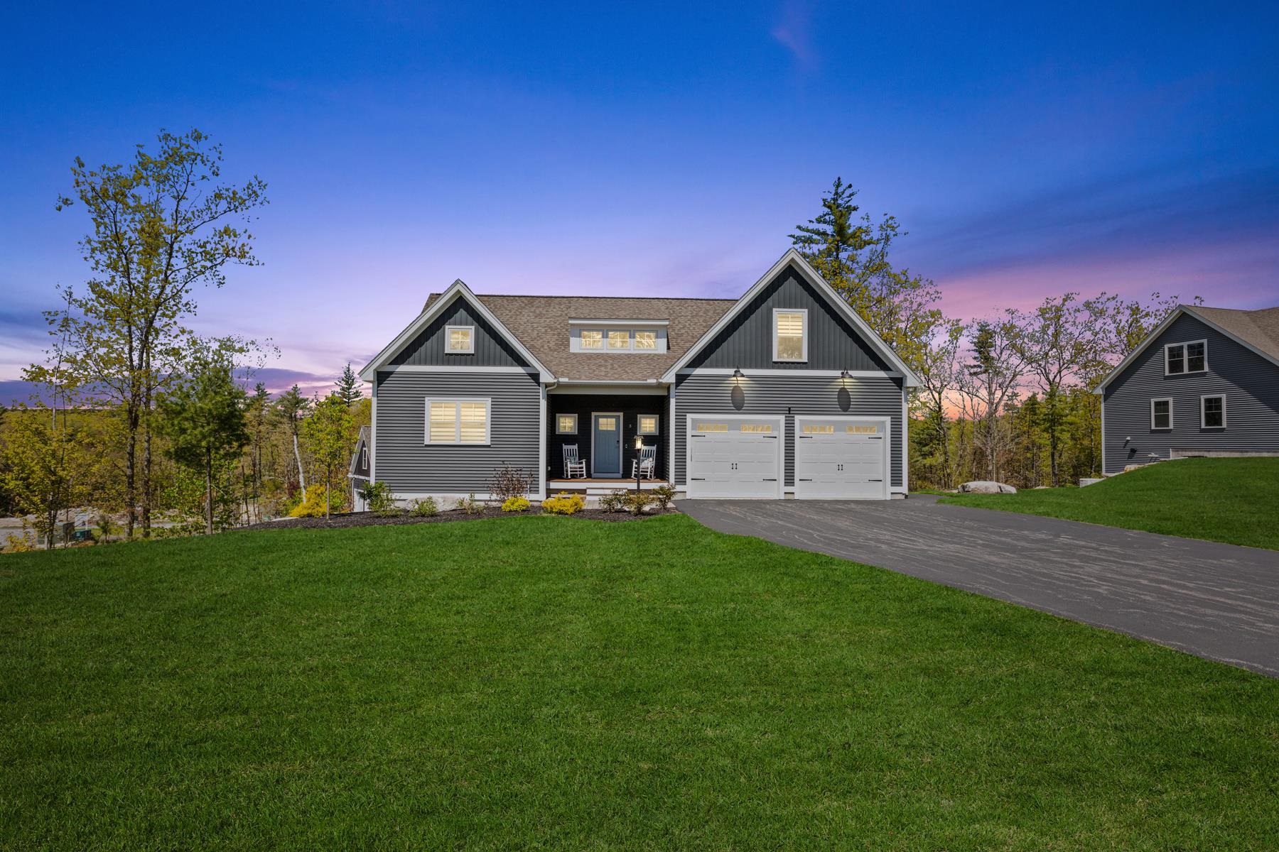 Welcome to 3 Sunrise Circle, Auburn, NH, located in the Village at Mt. Minor. Newly built in 2020 with an open floor plan, this luxury craftsman style property is beautifully sited on a corner lot with many upgrades throughout. The eat in chef’s kitchen has a center island with custom white cabinetry, a gas cooktop with a custom hood, stainless appliances, a custom tile backsplash and quartz countertops. The living area has soaring ceilings, large windows, hardwood floors and a stone, gas fireplace. There is a highly coveted first floor primary bedroom with a large custom-built closet and a spa like bath. To complete the first floor there is a mudroom, laundry room and an attached two car garage. The second floor has a large loft area overlooking the living room and two additional bedrooms with a beautiful, shared bath. The lower level of the home is a walk out with high ceilings and many large windows that bring lot of natural light in. There is a whole house generator, water softener and custom window treatments throughout the property. This home is deeded as a condominium but lives like a single-family home.