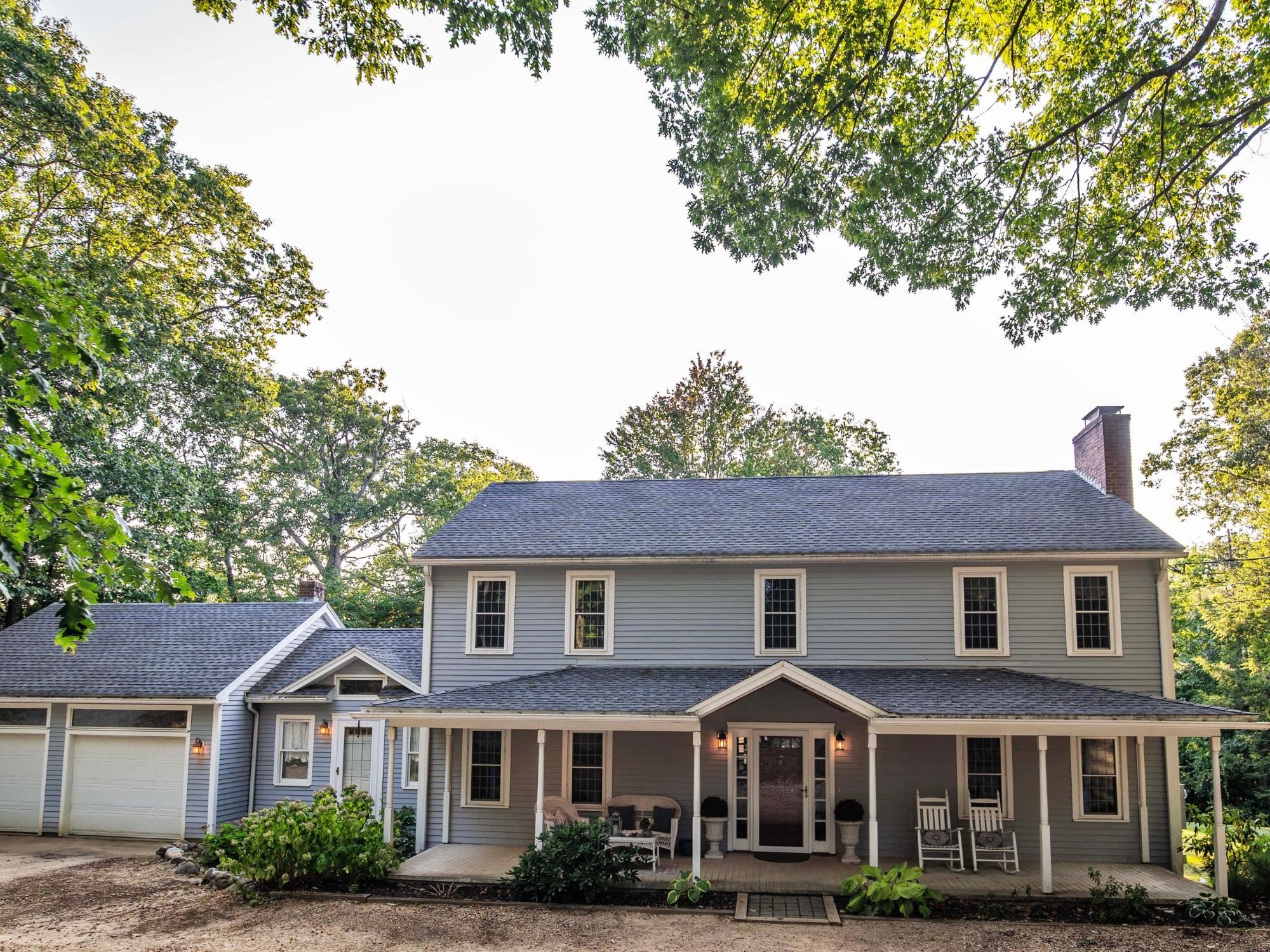 Welcome to your dream home located in the heart of historic Wilton Center. This better than new 4 Bed, 2.5 Bath colonial farmhouse is a perfect fusion of modern upgrades and enduring historic charm. Wind down the circular drive and you are instantly drawn to the picturesque covered front porch. The stunning renovated kitchen features ceramic tile flooring, granite countertops, a porcelain sink, and stainless appliances. Flow into the dedicated dining area and vaulted ceiling living room where you will find a custom stone hearth crafted from Souhegan River rocks. The pellet stove is perfect for those chilly NH months. Additional 1st floor highlights include a convenient laundry room, a spacious front to back living area with fireplace complete with stunning wide plank pine floors throughout. Upstairs, the primary bedroom offers a recently updated en-suite bath with dressing area and large closets. 3 bedrooms and a full bath complete the second level. A walk-up attic and walk-out basement offer potential for more finished space and storage. Step through the new slider out to an expansive deck. Some of the updates include a new roof, well pump, hot water tank, 500-gal propane tank, and generator hook-up. There’s nothing left to do here for many years to come. A short drive to High Mowing and Pine Hill Schools, easy access to shopping, dining, the Milford Oval and minutes to the Massachusetts border.